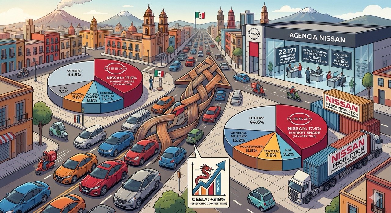 En marzo de 2026, Nissan vendió 22,171 vehículos en México. Eso es casi uno de cada cinco autos que salió de una agencia en todo el país durante el mes.